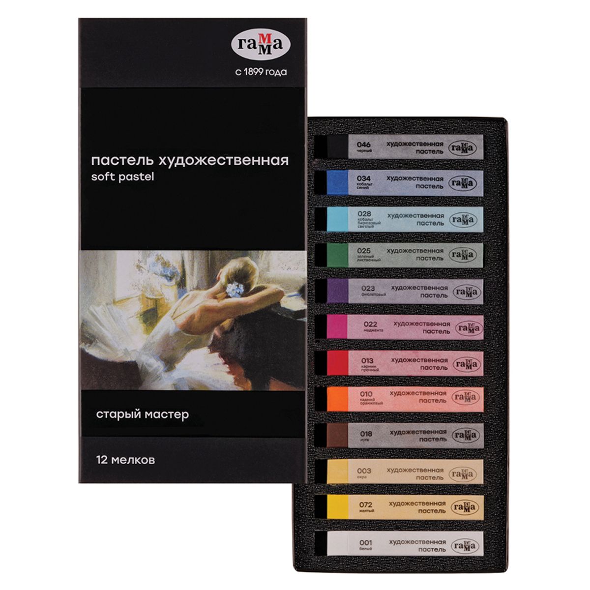 Пастель художественная Гамма "Старый мастер", 12 цветов, картон. упаковка