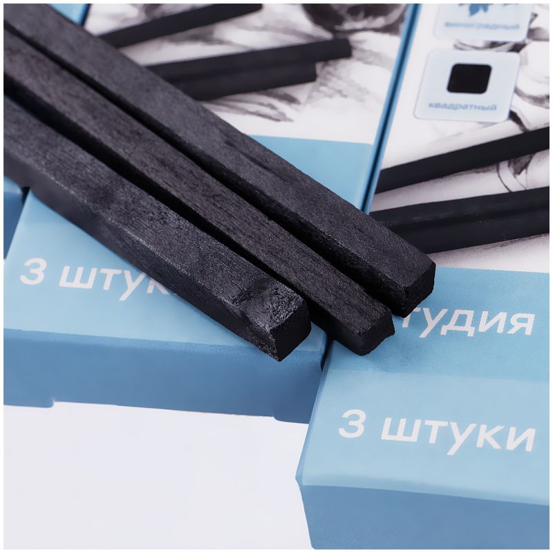 Уголь натуральный Гамма "Студия", виноградный, твердый, квадратный, 3шт., картон. упаковка, европодвес
