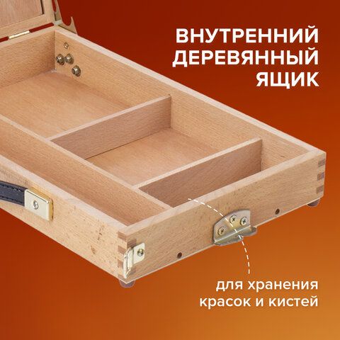 Этюдник BRAUBERG ART CLASSIC, бук, 40х25х7,5см, высота холста 70см, ножки метал 90см, ремень,190655