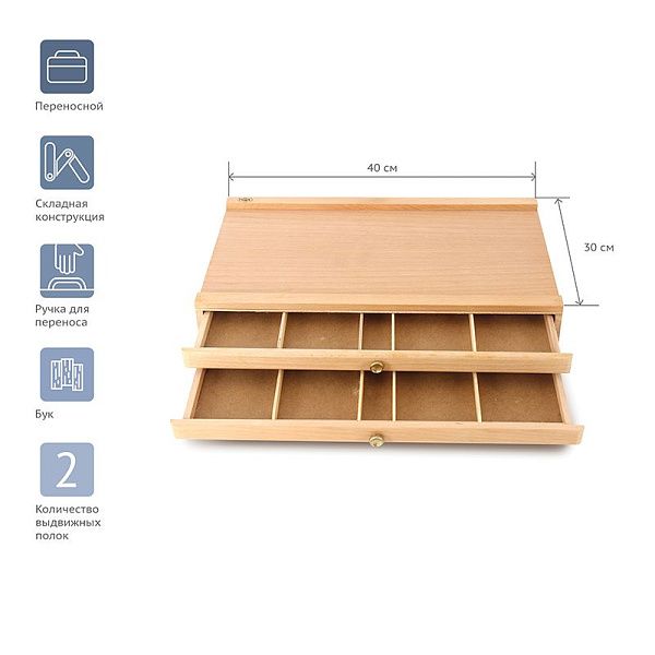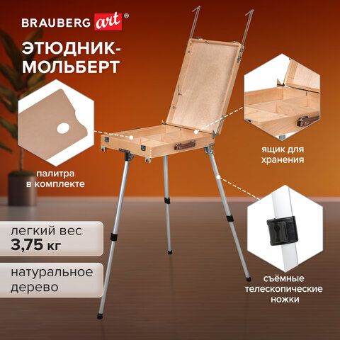 Этюдник из бука, 47х33х8,5 см, высота холста до 60 см, ножки алюминий 78 см, BRAUBERG ART, 192268