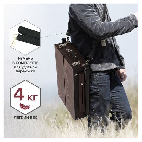 Этюдник-мольберт BRAUBERG ART PREMIERE, алюминиевые ножки, холст до 82 см, кофейный, 191757