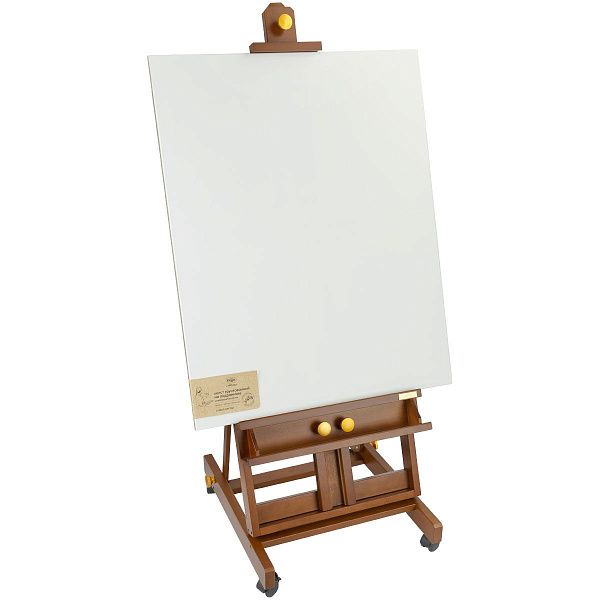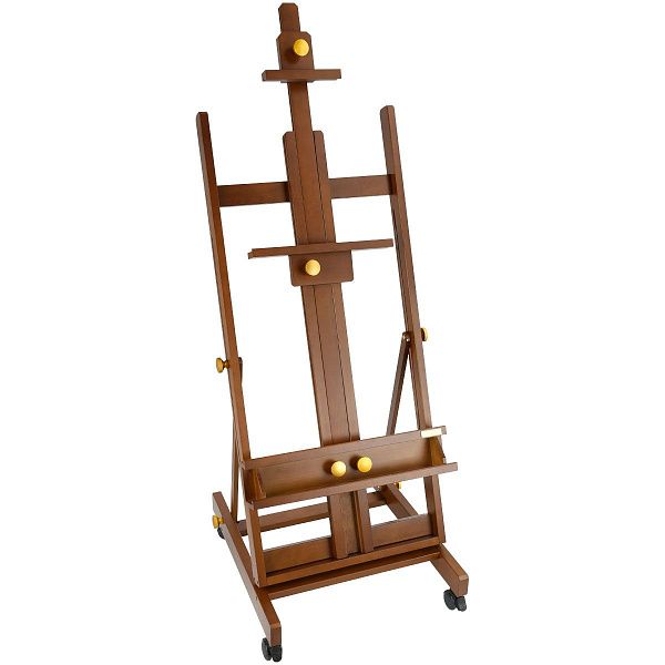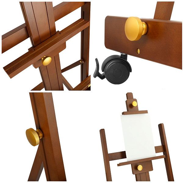 • Напольные мольберты — устойчивые конструкции из дерева или металла, поддерживающие большие холсты и предназначенные для длительного использования в студии.