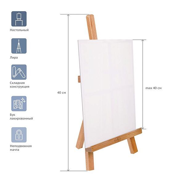 • Если мольберт складной, проверьте его устойчивость после сборки, чтобы избежать опрокидывания во время работы.