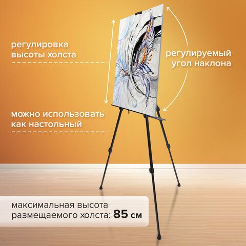 Мольберт алюминиевый BRAUBERG ART CLASSIC, тренога, переносной, с чехлом, разлож. 100х165х70, 191280