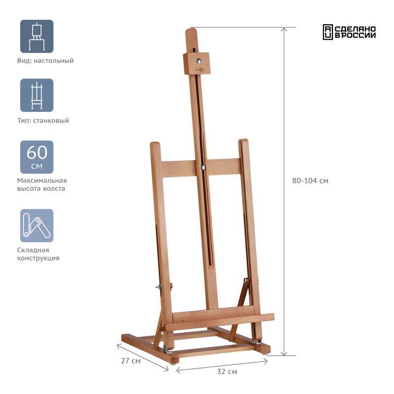 Мольберт настольный Гамма "Студия", 27*32*80(104)см, российский бук