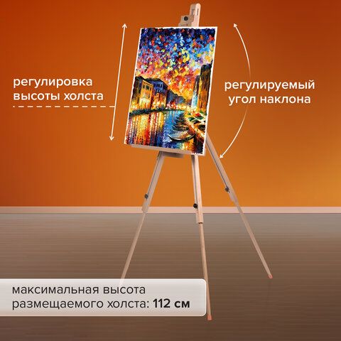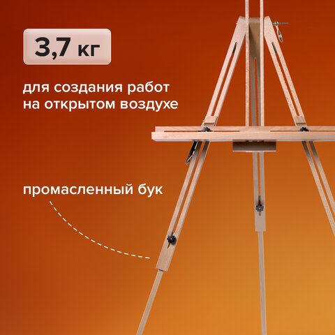 Мольберт полевой - тренога, бук, с полкой, высота 132-192 см, высота холста 112 см, BRAUBERG ART, 192262