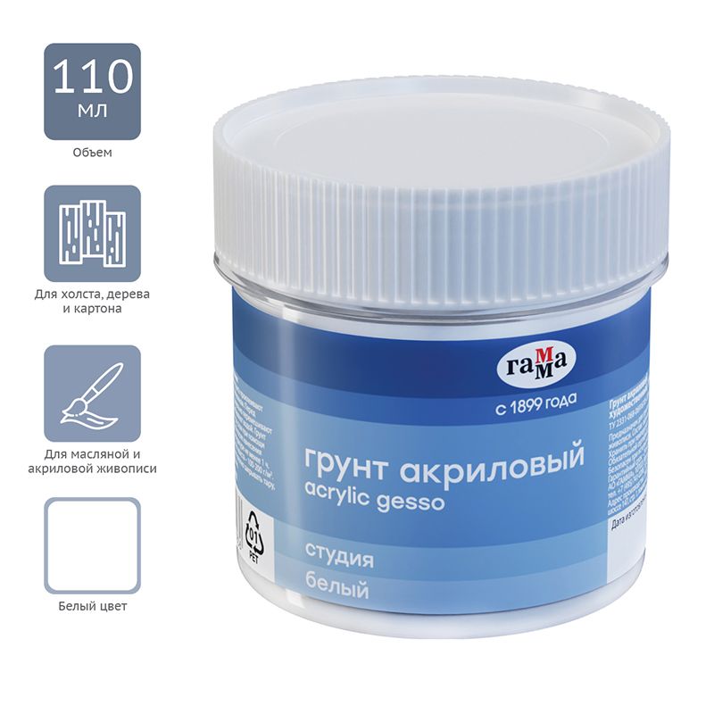 Грунт акриловый Гамма "Студия", белый, 110мл