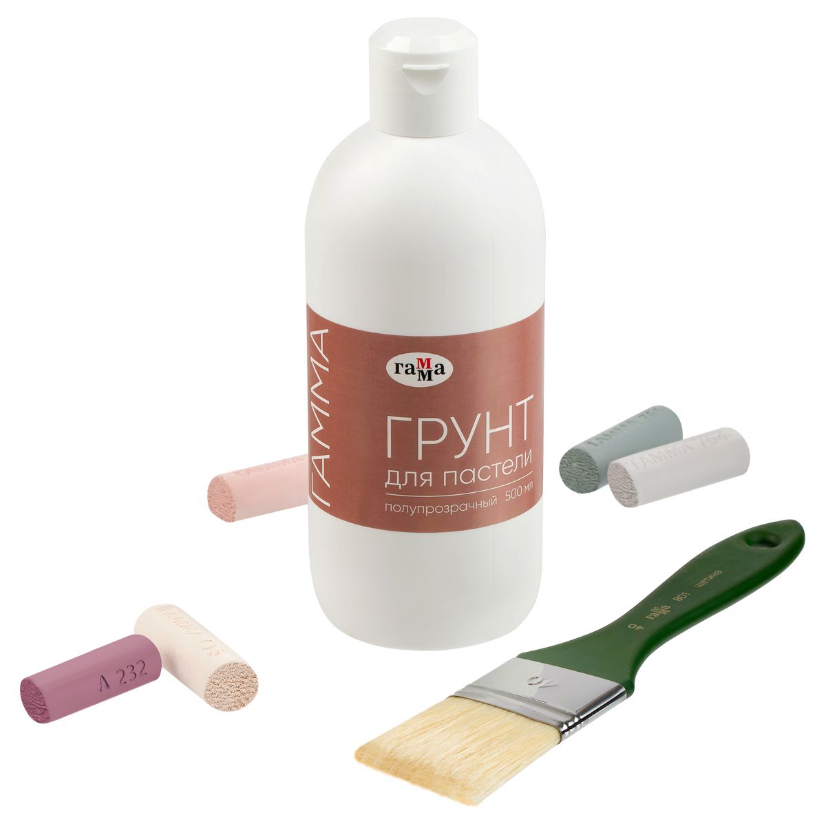 Полупрозрачный грунт даёт большую вариативность в работе. Его можно наносить поверх гуаши, акрила, акварели, не изменяя при этом цвет подложки. Имеет мелкодисперсную структуру, поэтому наносится тонко и фактурно. Позволяет достичь хорошей адгезии грунтуемой поверхности и пастели. Высыхает до 10 минут. Расход средства – 40-100 мл/ м2. Грунт представлен в пластиковой бутылочке объёмом 500 мл.