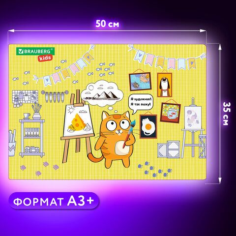Настольное покрытие BRAUBERG KIDS для труда и творческих занятий, ПВХ, "Artist", 50х35 см, 272358
