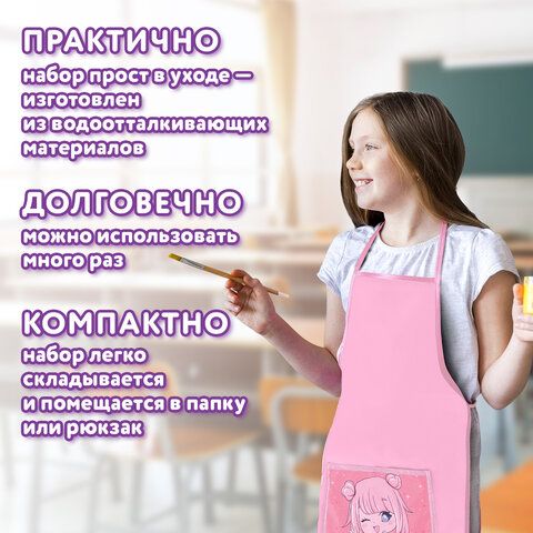Набор для уроков труда ЮНЛАНДИЯ, клеенка ПВХ, накидка фартук с нарукавниками, "Anime pals", 272365