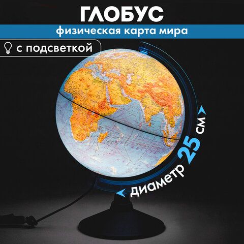 Глобус физический GLOBEN "Классик Евро", диаметр 250 мм, с подсветкой, Ке012500189