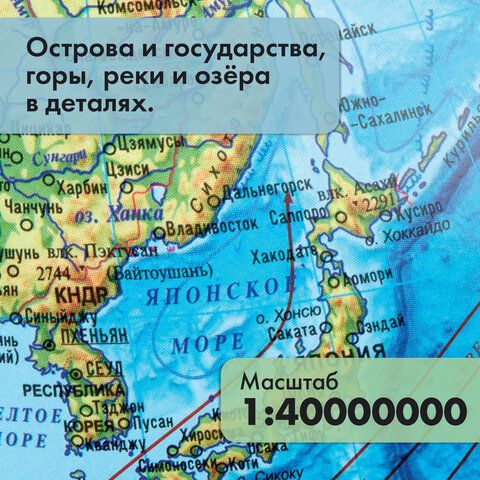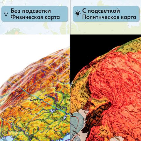 Глобус физический/политический Globen Классик, диаметр 320 мм, с подсветкой, рельефный, К013200223