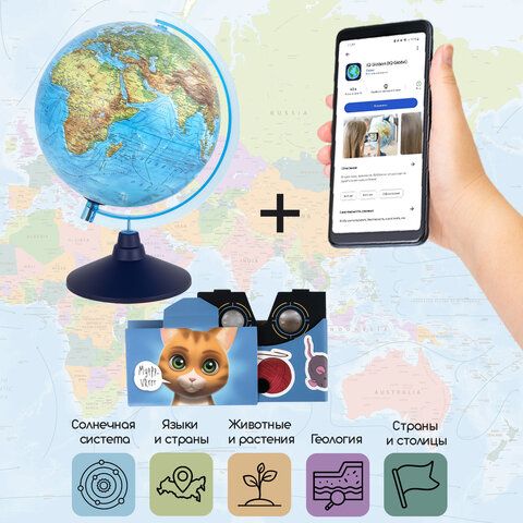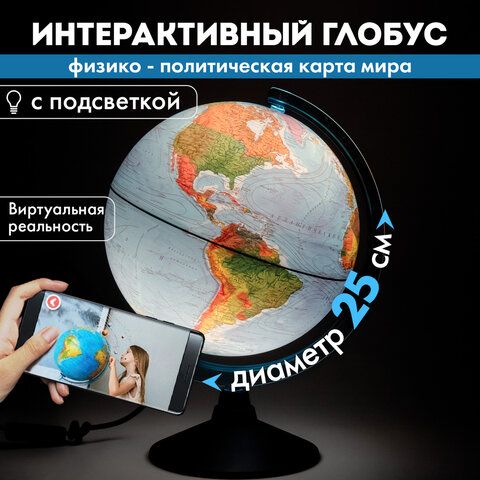 Глобус интерактивный физический/политический GLOBEN, диаметр 250 мм, с подсветкой, INT12500284