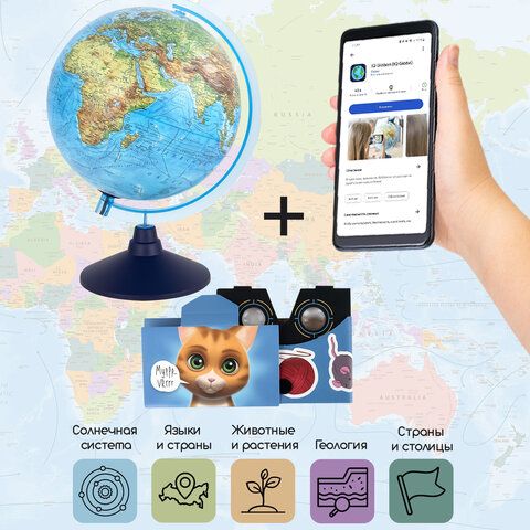 Глобус интерактивный + очки VR, политический, GLOBEN, 25 см с подсветкой, INT12500304