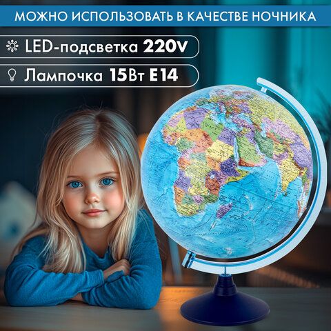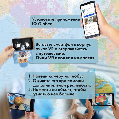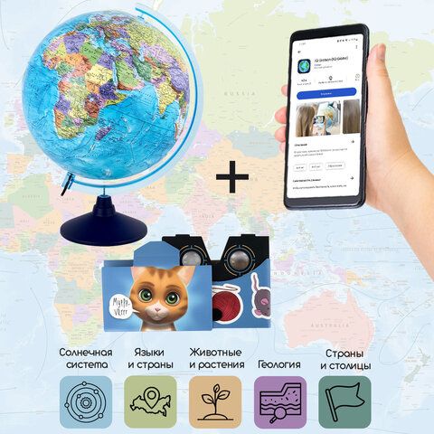 Глобус интерактивный + очки VR политический, Globen, 32 см, рельефный, с подсветкой, INT13200315