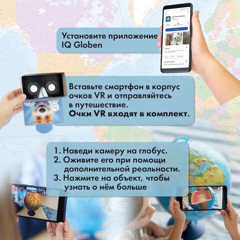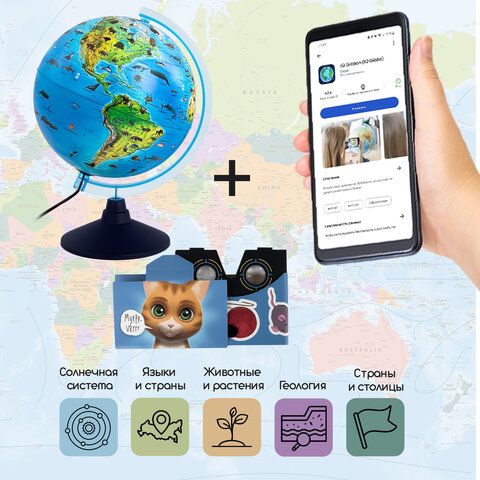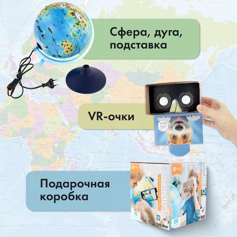 Глобус интерактивный + очки VR, зоогеографический, GLOBEN, 25см, с подсветкой, INT12500306