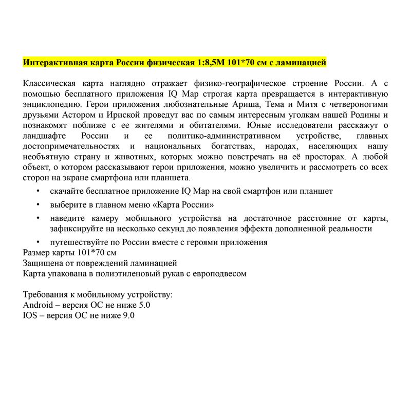 Карта "Россия" физическая Globen, 1:8,5млн., 1010*700мм, интерактивная, с ламинацией, европодвес
