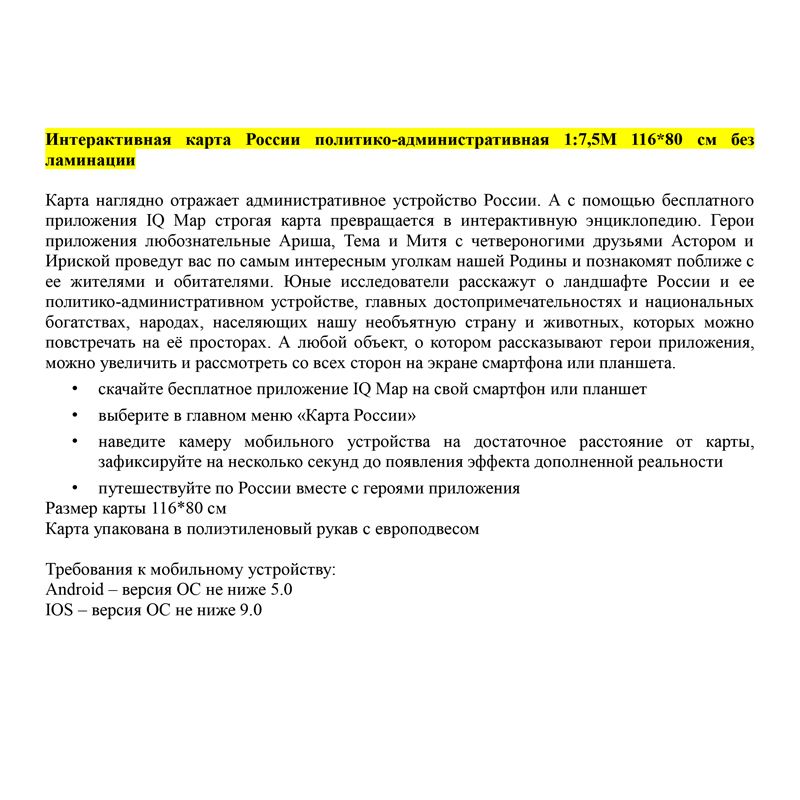 Карта "Россия" политико-административная Globen, 1:7,5млн., 1160*800мм, интерактивная, европодвес