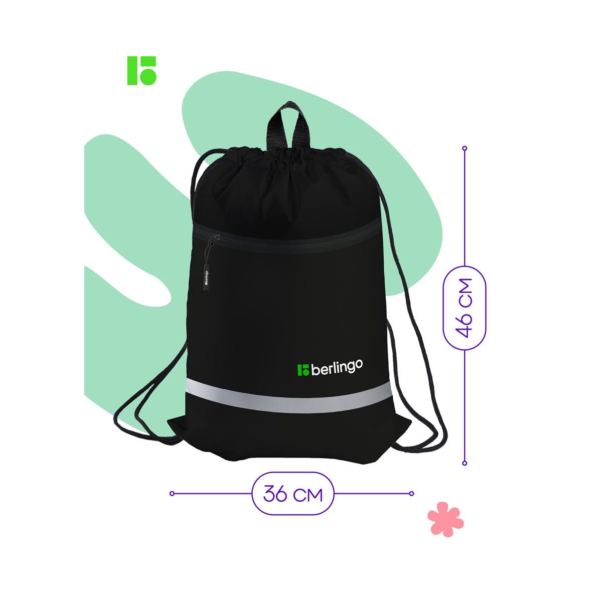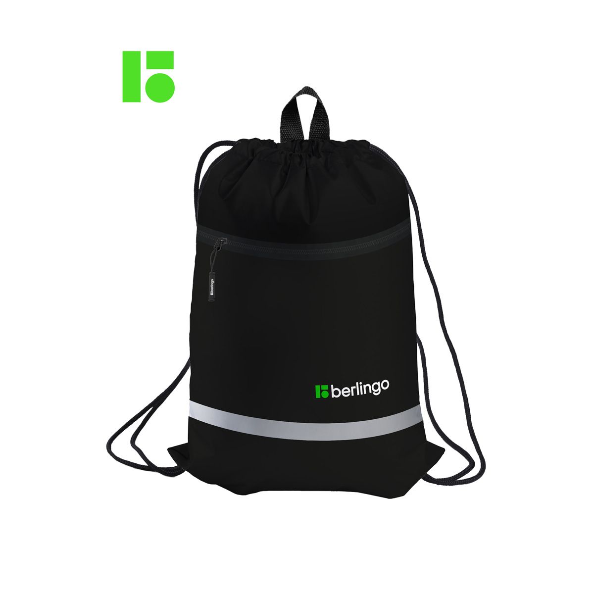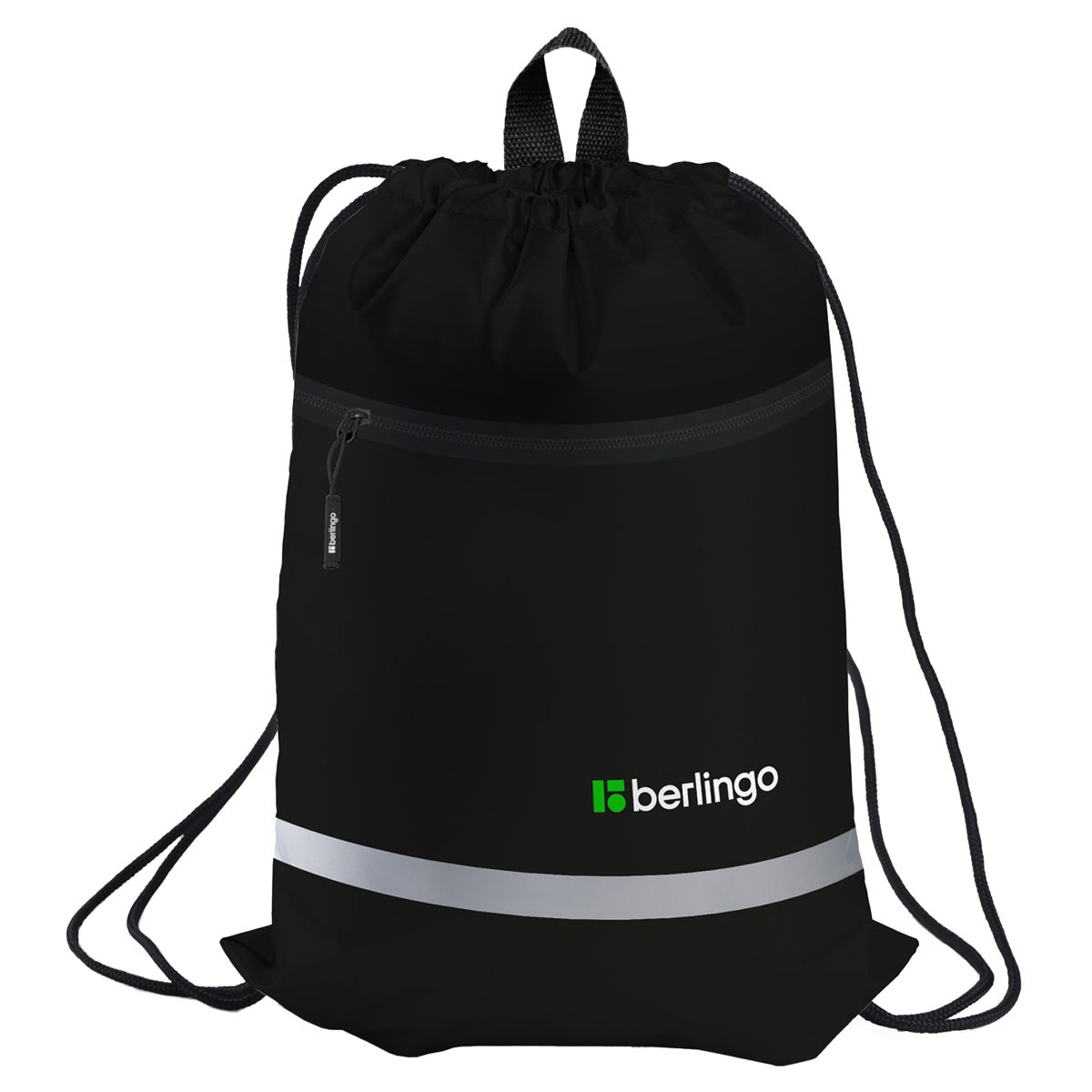 Мешок для обуви 1 отделение Berlingo "Basic black", 360*460мм, светоотражающая лента, карман на молнии
