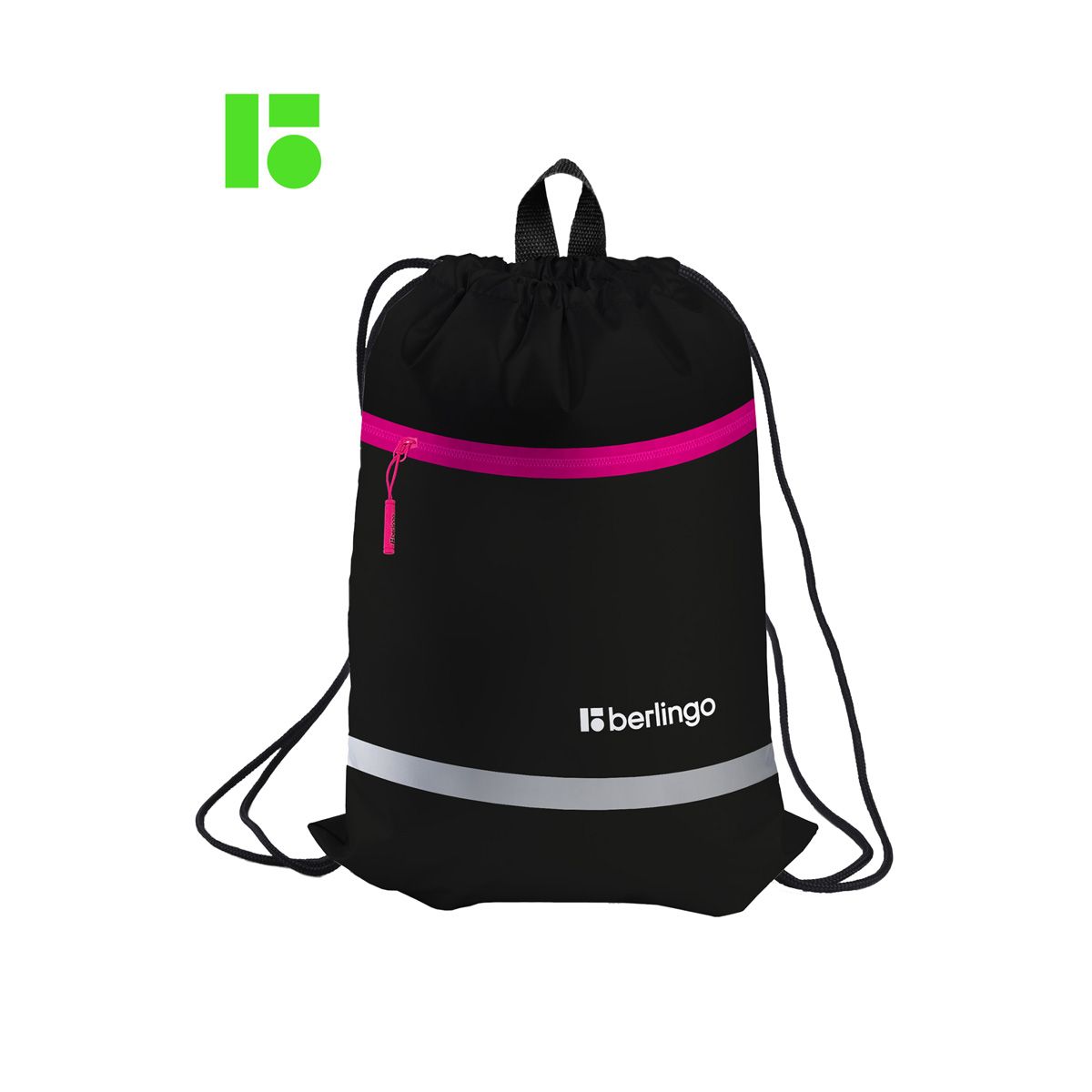 Мешок для обуви 1 отделение Berlingo "Basic pink", 360*460мм, светоотражающая лента, карман на молнии