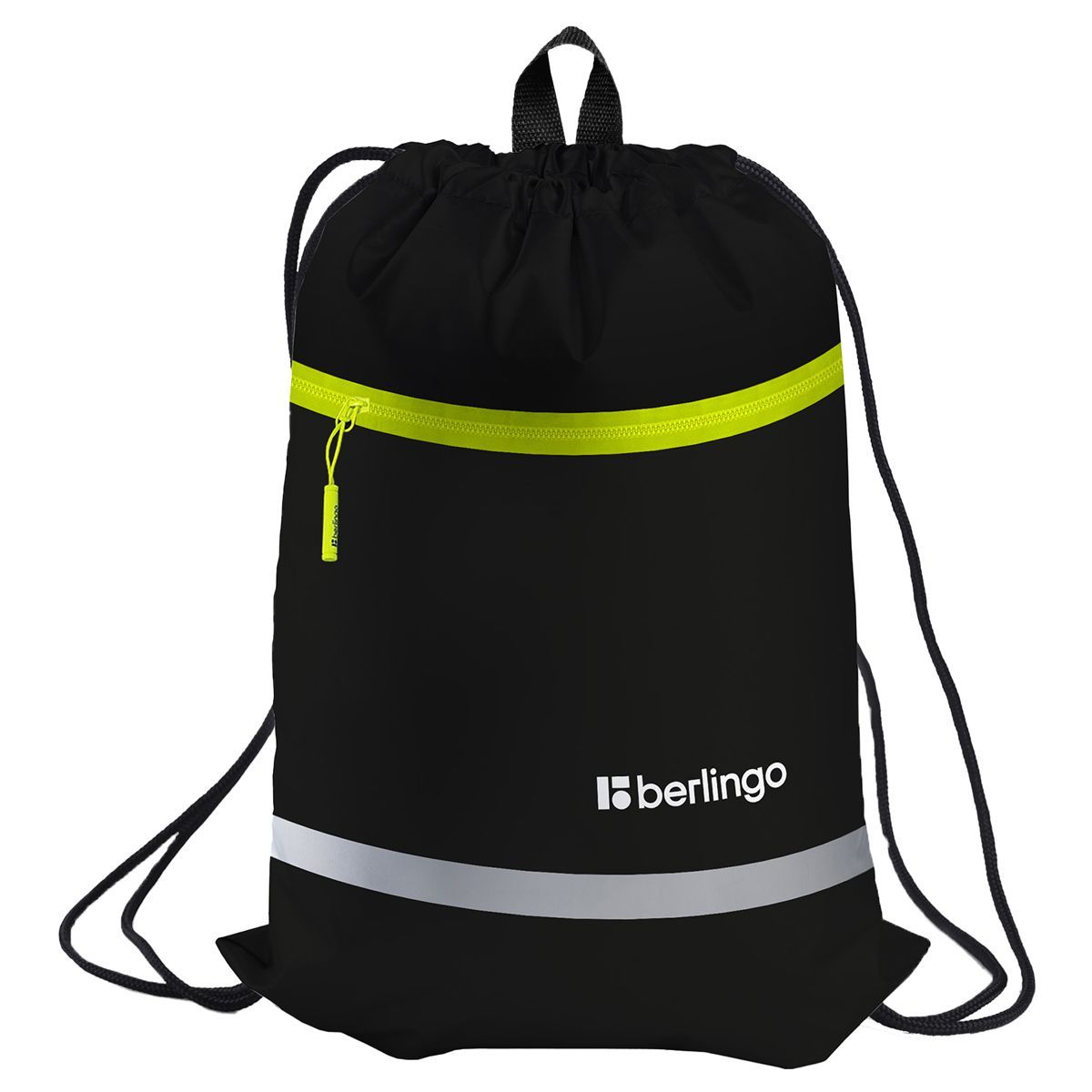 Мешок для обуви 1 отделение Berlingo "Basic yellow", 360*460мм, светоотражающая лента, карман на молнии