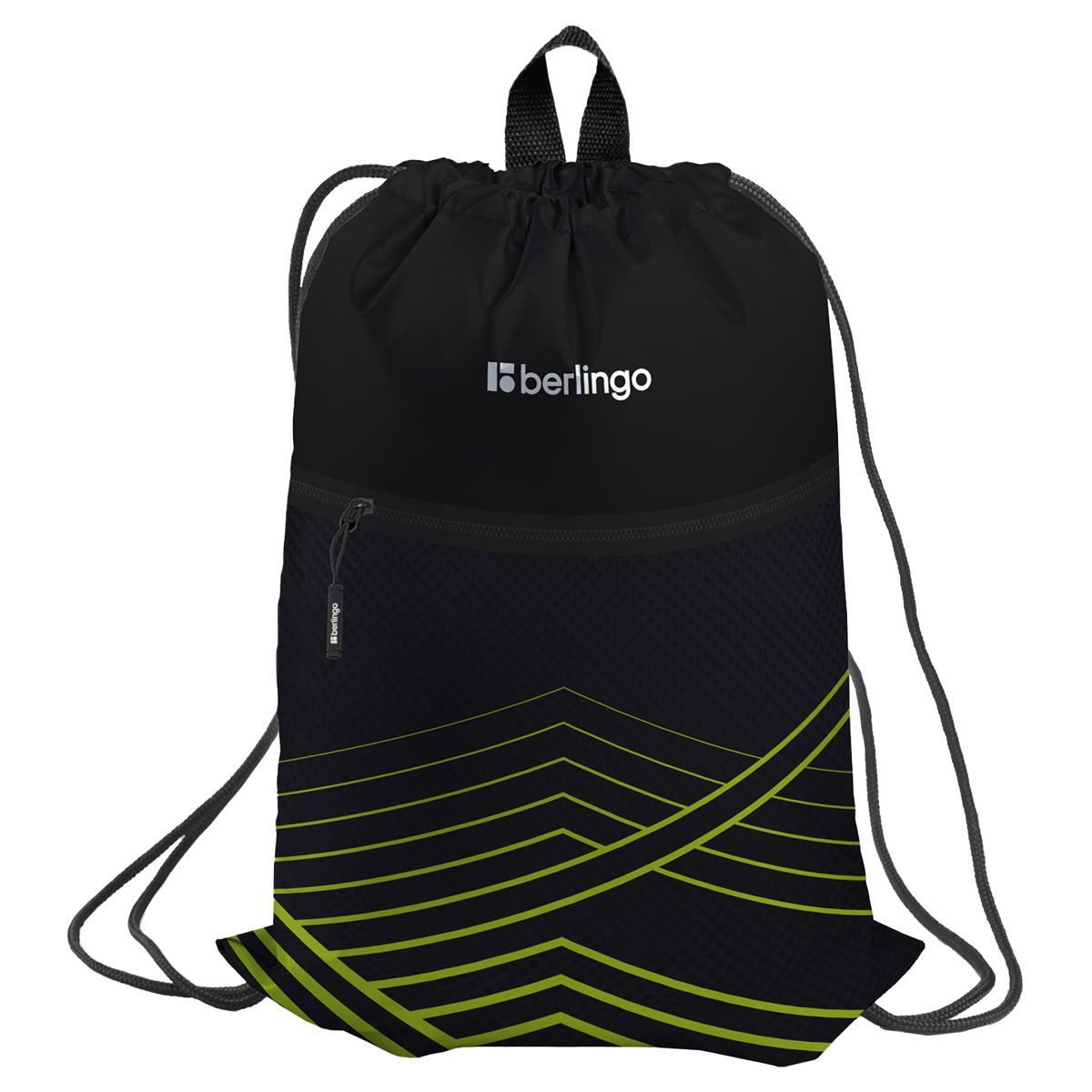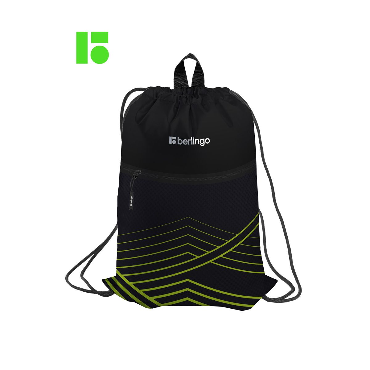Мешок для обуви 1 отделение Berlingo "Black and green geometry", 360*470мм, карман на молнии