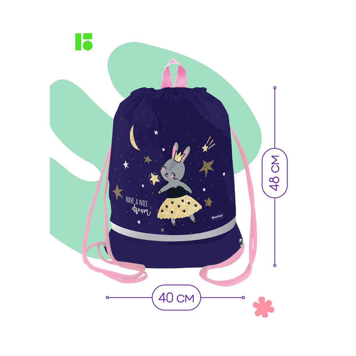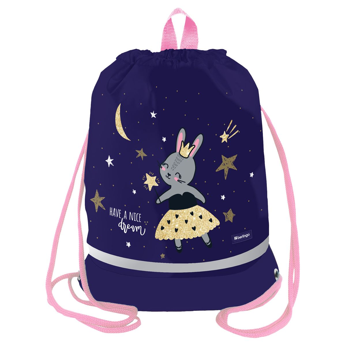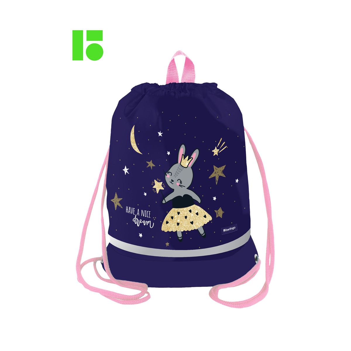 Мешок для обуви 1 отделение Berlingo "Bunny dream", 400*480мм, расширяющееся дно, светоотражающая лента, карман на молнии