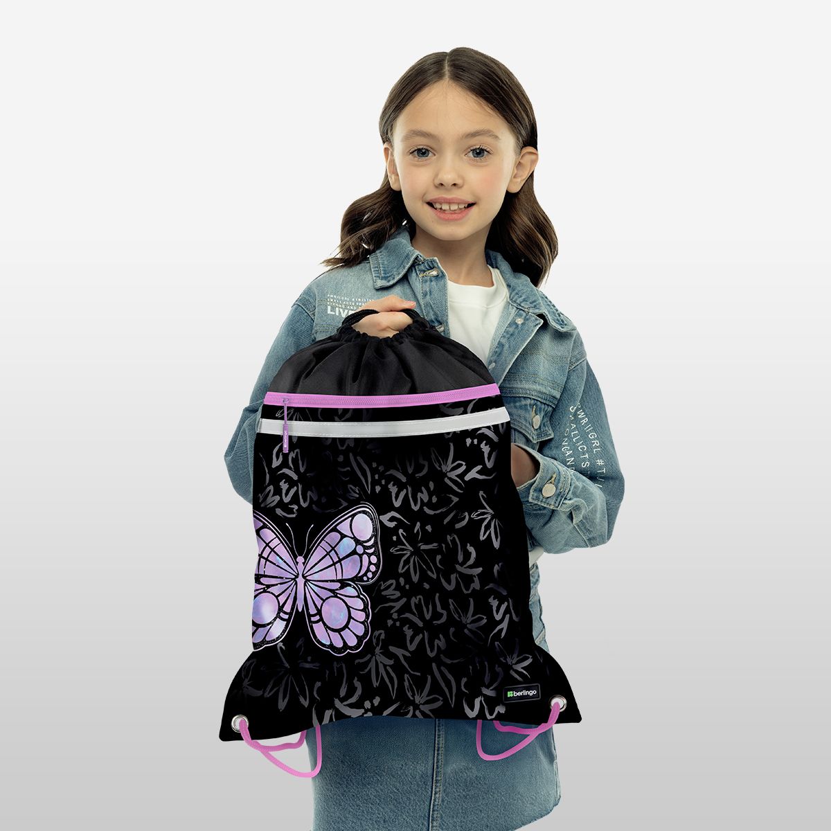 Мешок для обуви 1 отделение Berlingo "Butterfly Effect", 360*460мм, вентиляционная сеточка , светоотражающая лента, карман на молнии