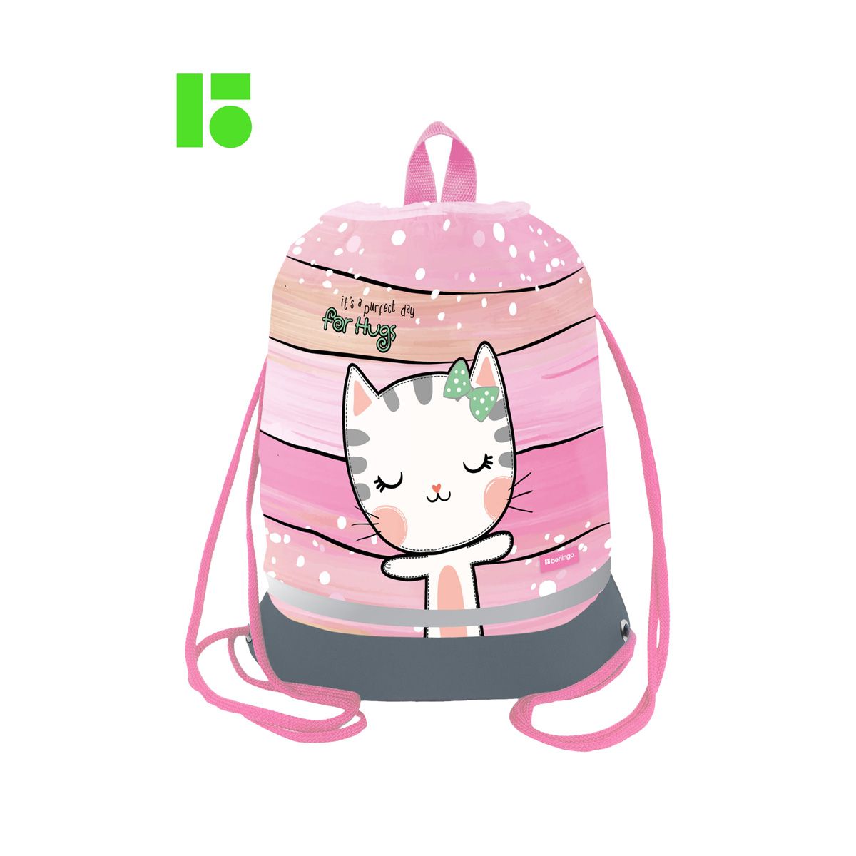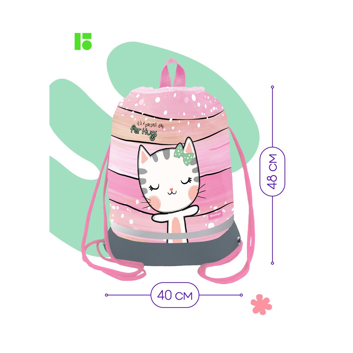 Мешок для обуви 1 отделение Berlingo "Cat Hugs", 400*480мм, расширяющееся дно, светоотражающая лента, карман на молнии