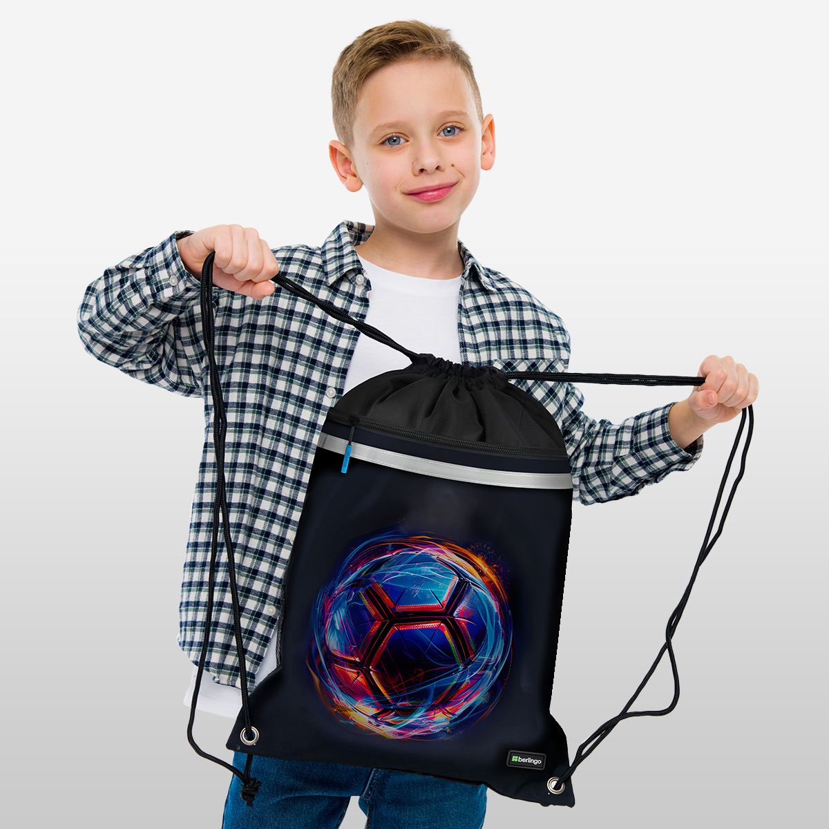 Мешок для обуви 1 отделение Berlingo "Cyber Football", 360*460мм, вентиляционная сеточка , светоотражающая лента, карман на молнии360*460