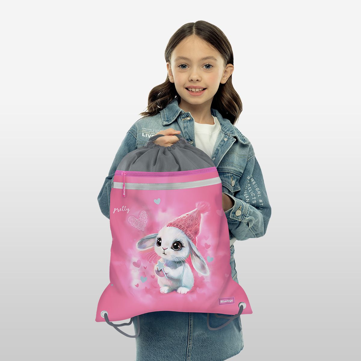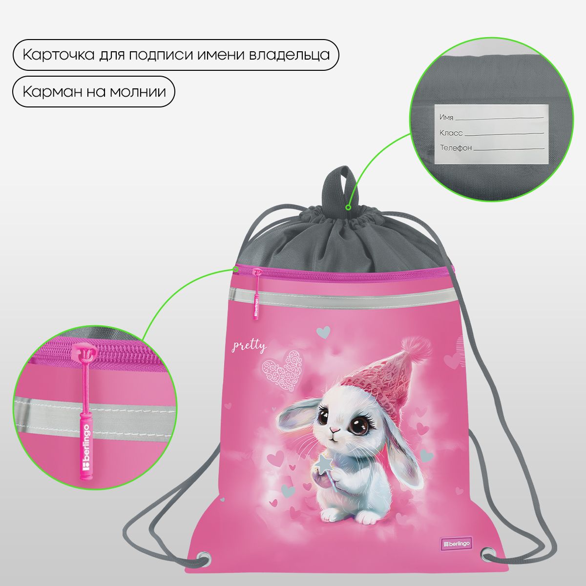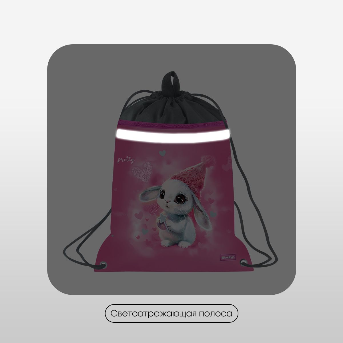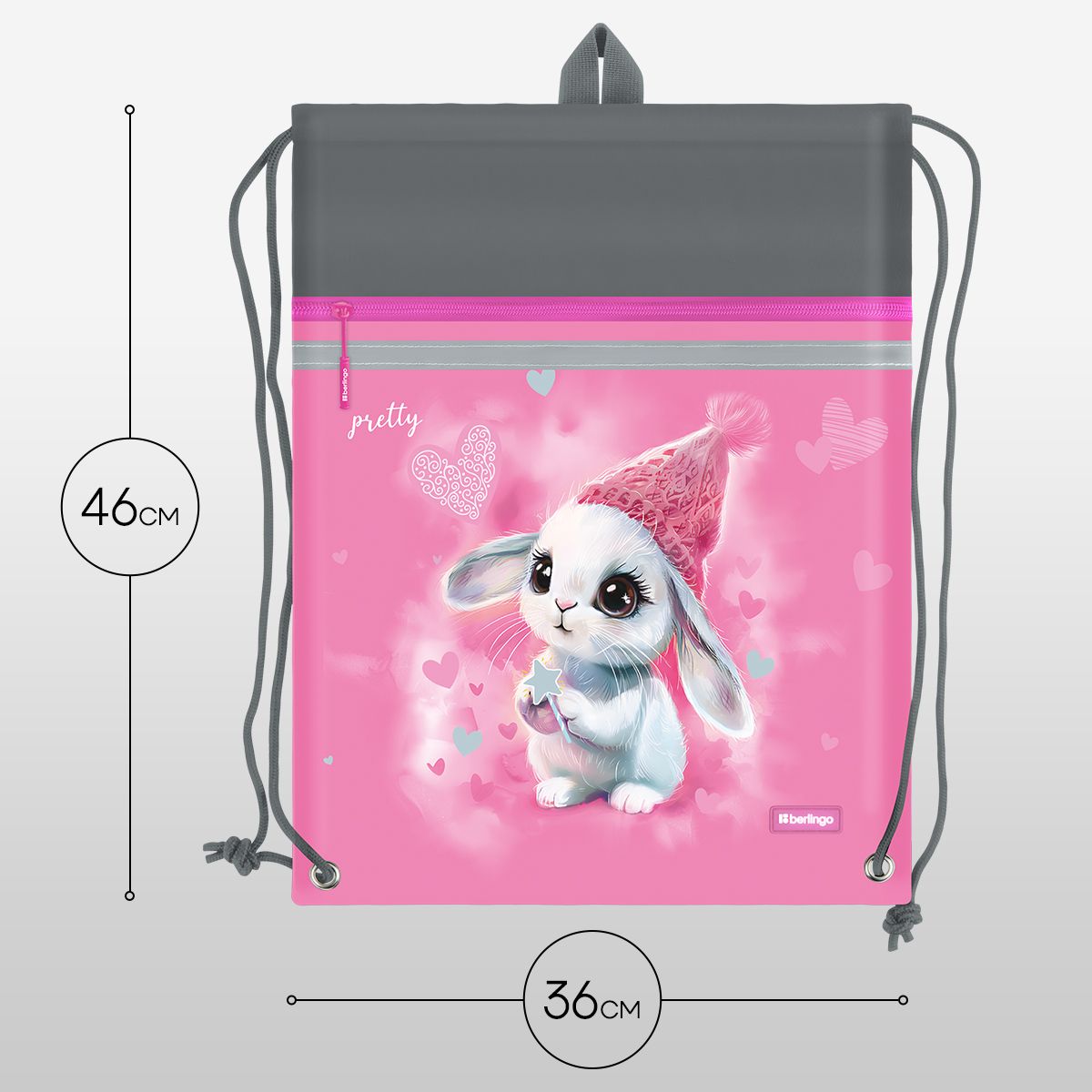 Мешок для обуви 1 отделение Berlingo "Dreamy Bunny", 360*460мм, вентиляционная сеточка , светоотражающая лента, карман на молнии
