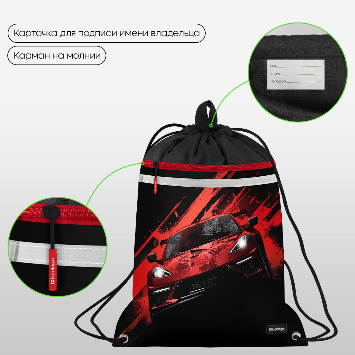 Мешок для обуви 1 отделение Berlingo "Fast Track", 360*460мм, вентиляционная сеточка , светоотражающая лента, карман на молнии