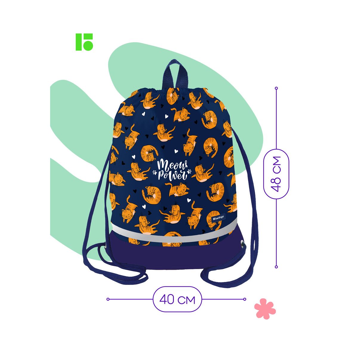 Мешок для обуви 1 отделение Berlingo "Meow power", 400*480мм, расширяющееся дно, светоотражающая лента, карман на молнии