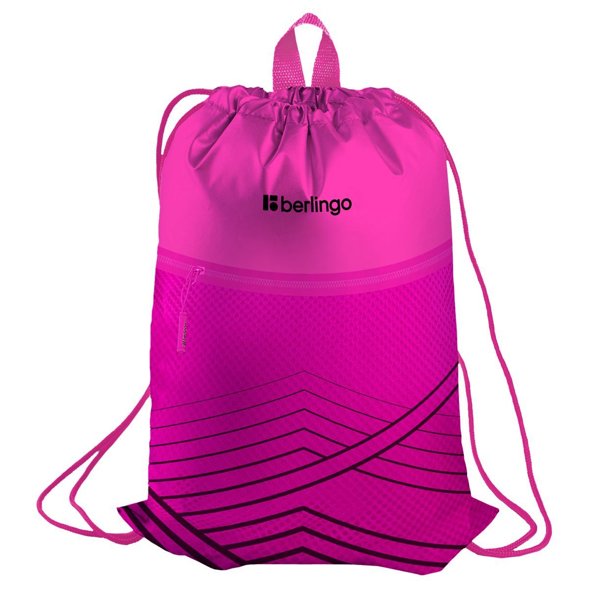Мешок для обуви 1 отделение Berlingo "Pink geometry", 360*470мм, карман на молнии