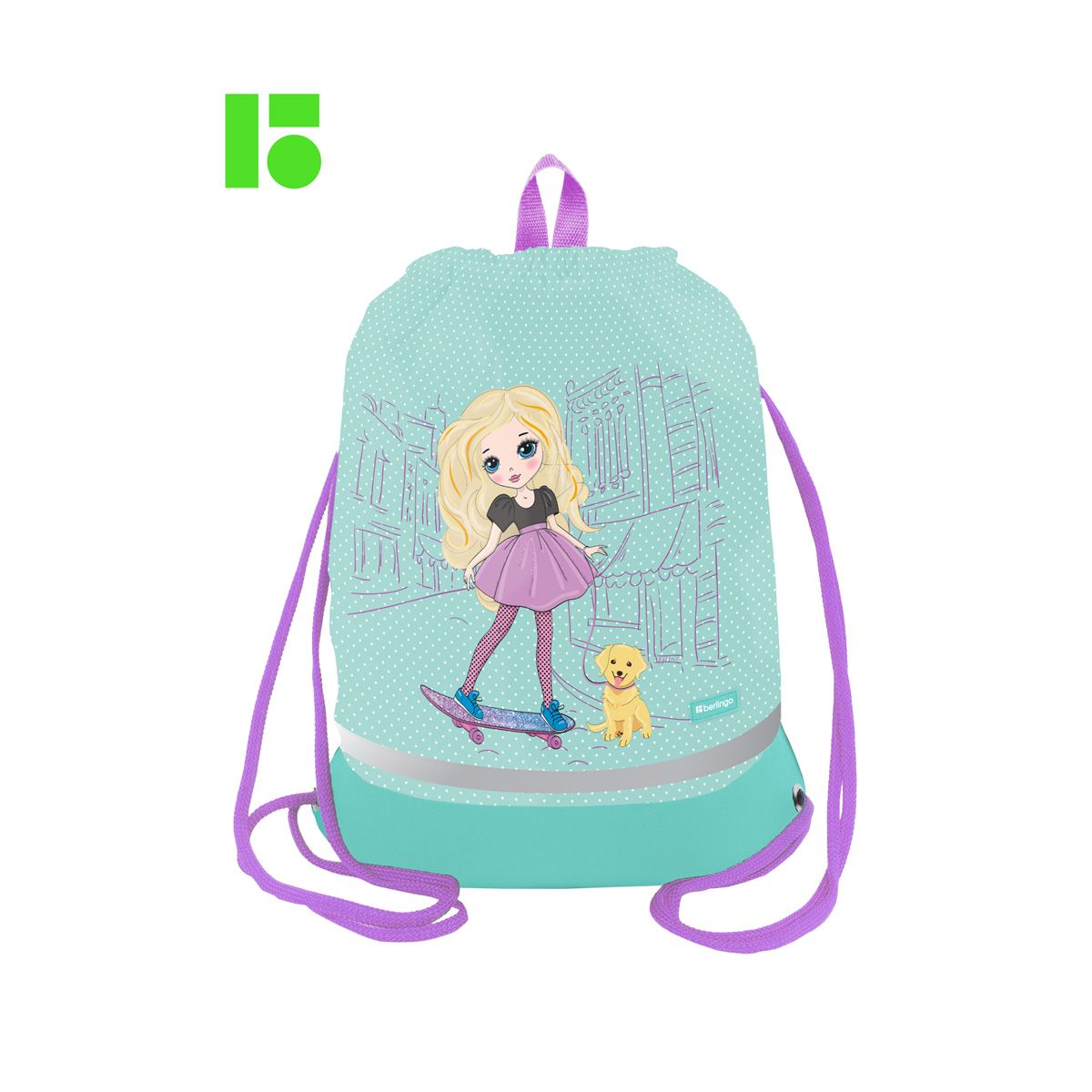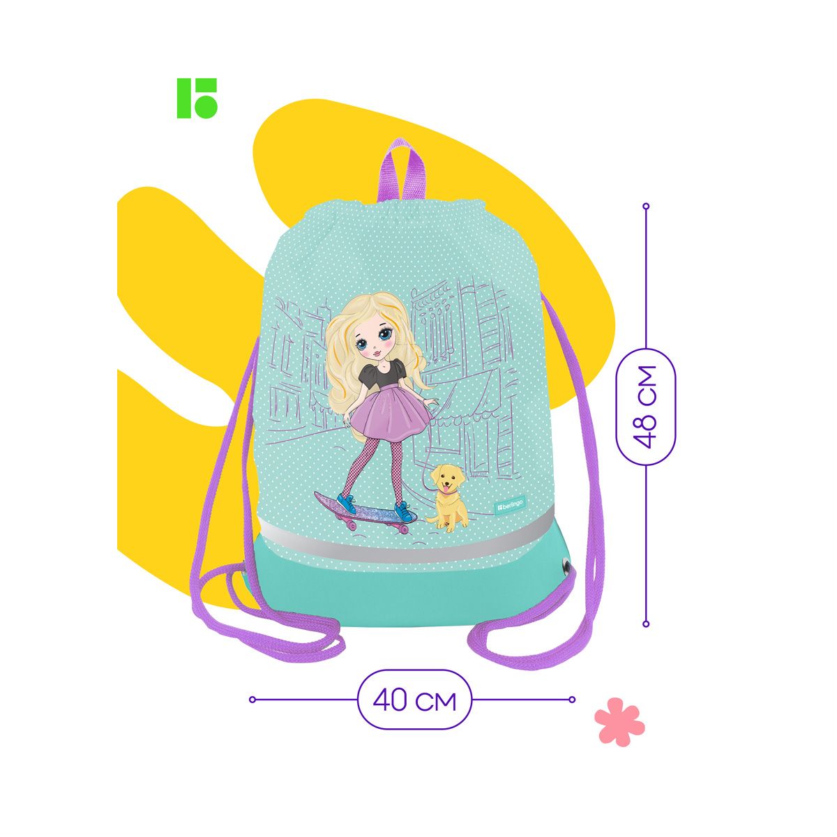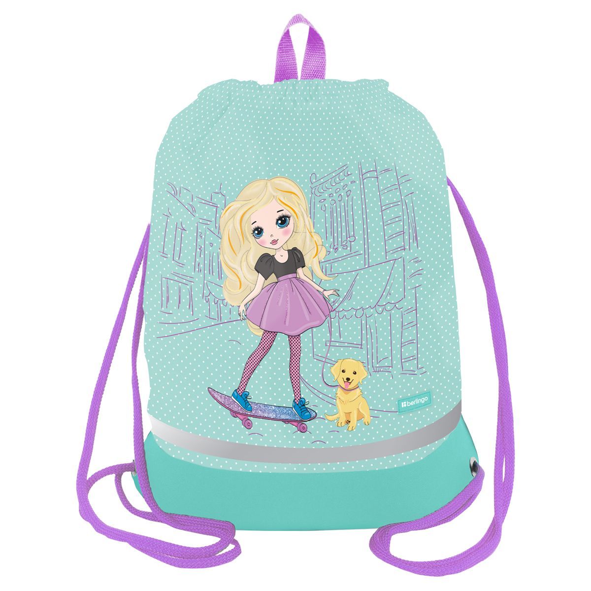 Мешок для обуви 1 отделение Berlingo "Pretty girl", 400*480мм, расширяющееся дно, светоотражающая лента, карман на молнии