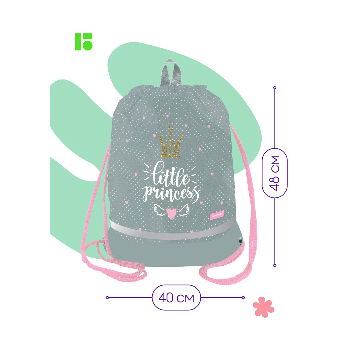 Мешок для обуви 1 отделение Berlingo "Princess", 400*480мм, расширяющееся дно, светоотражающая лента, карман на молнии