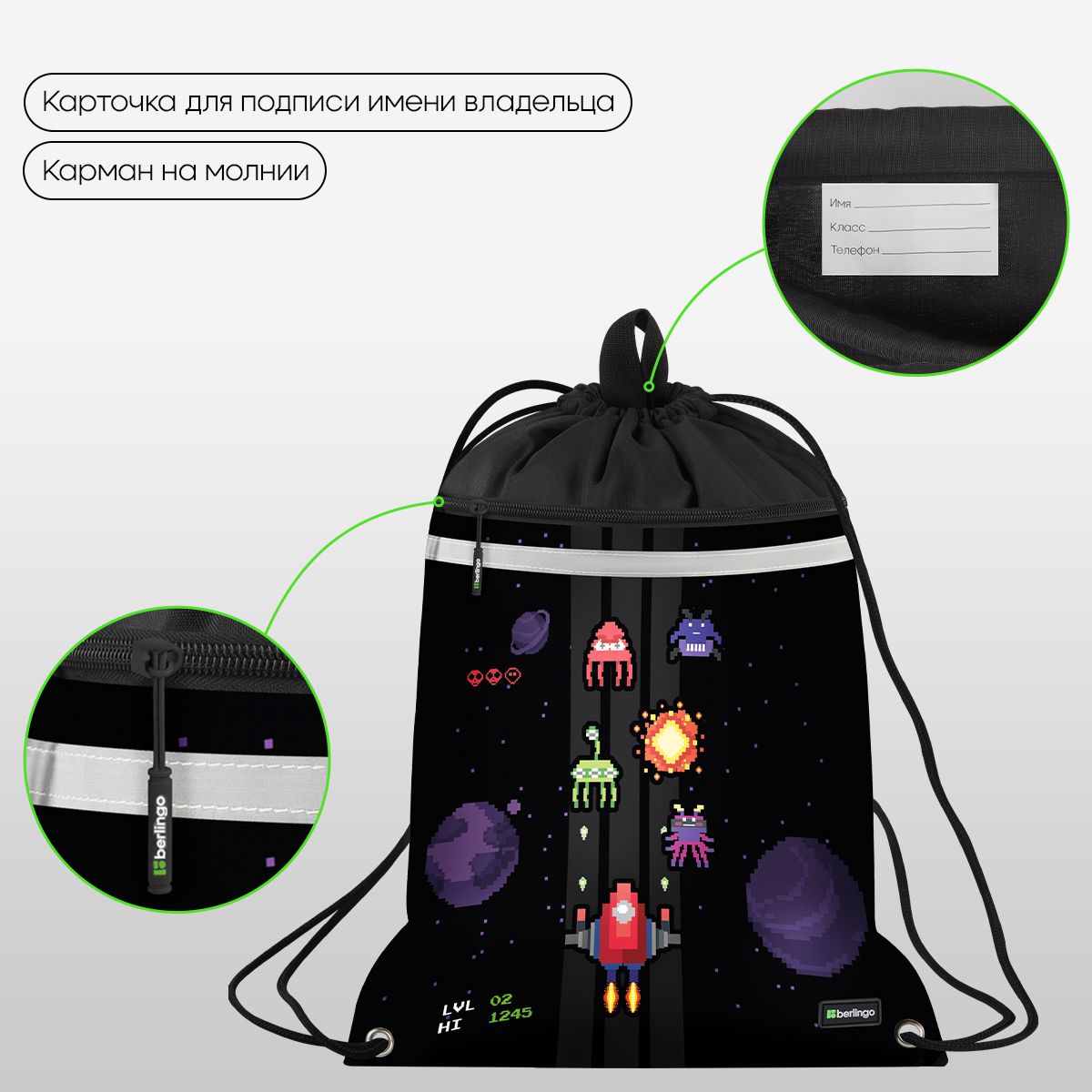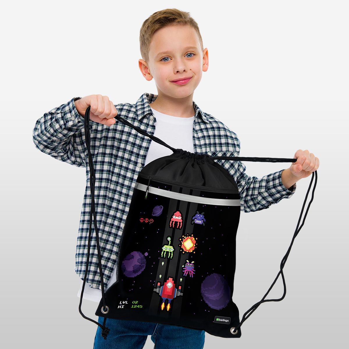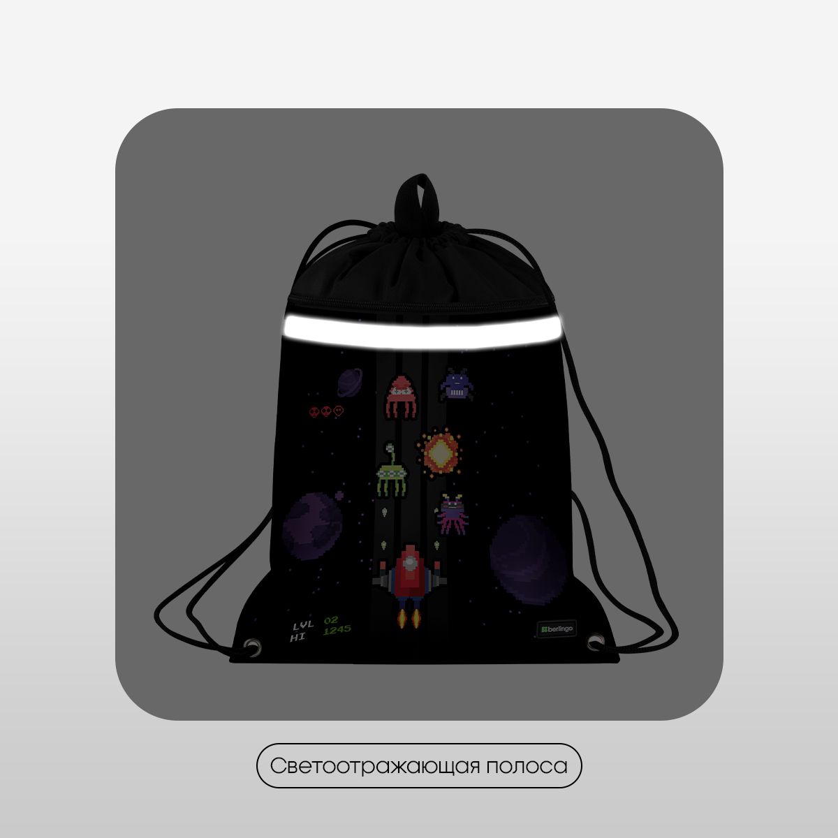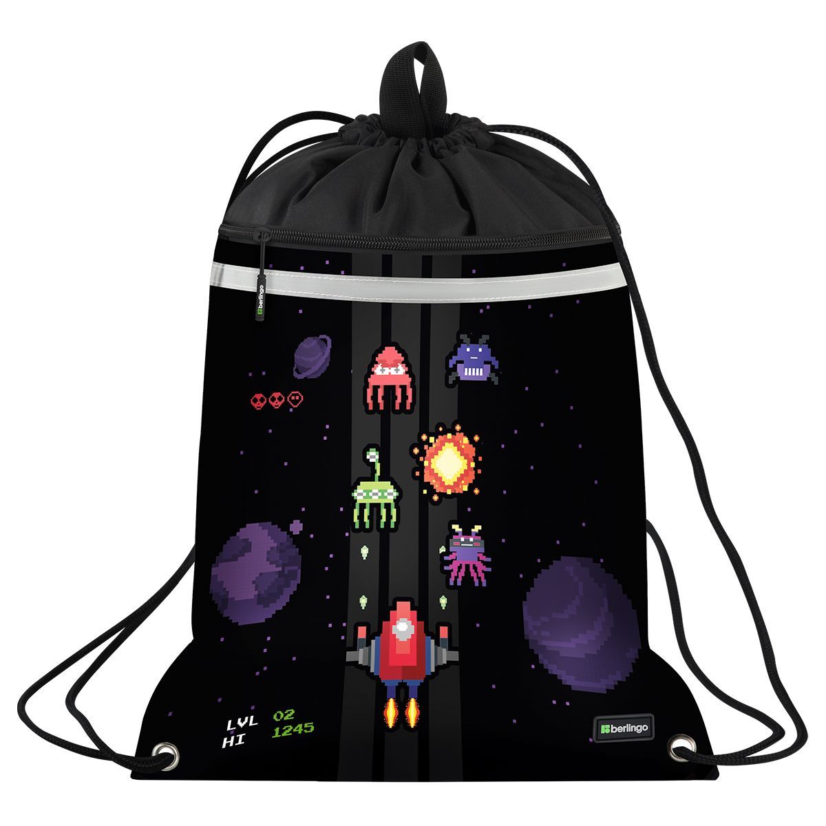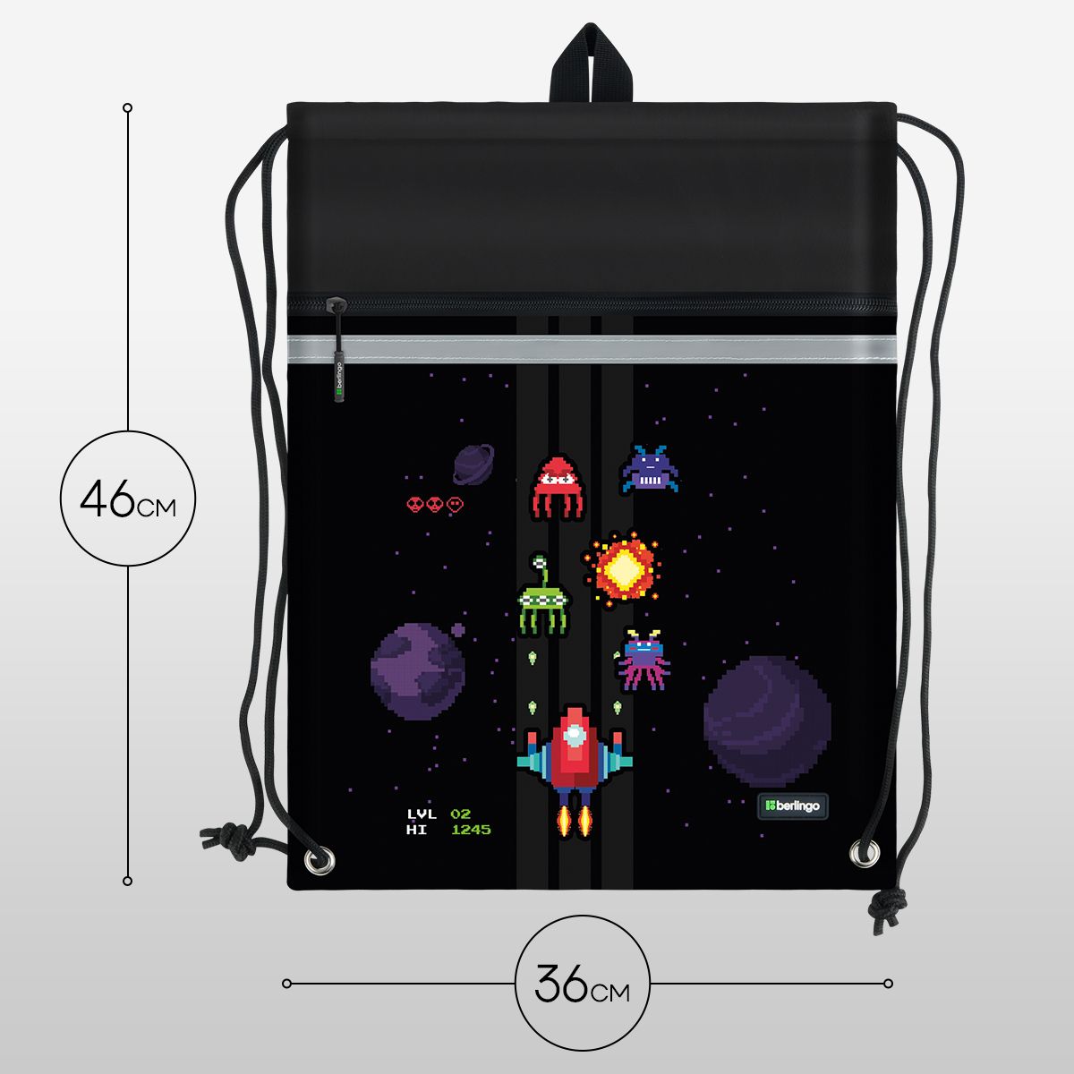 Мешок для обуви 1 отделение Berlingo "Space Battle", 360*460мм, вентиляционная сеточка , светоотражающая лента, карман на молнии