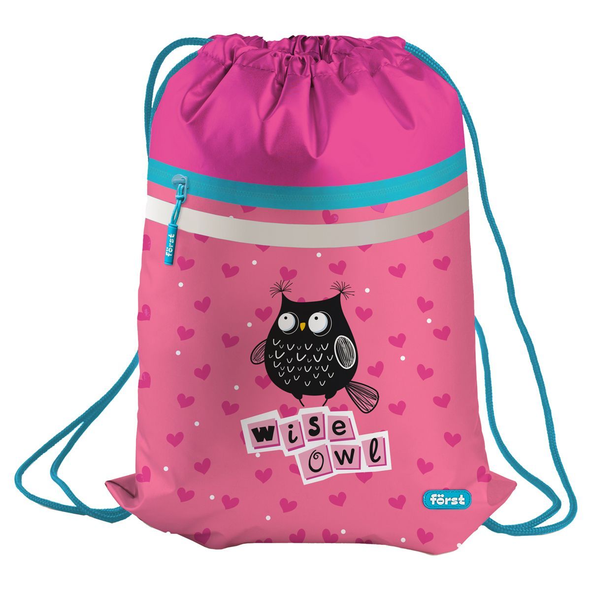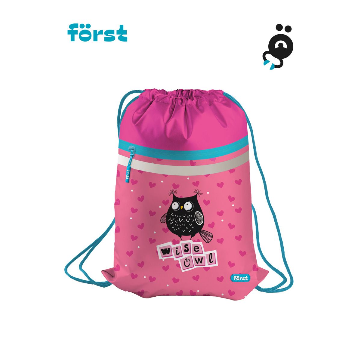 Мешок для обуви 1 отделение Först "Black owl", 350*460мм, вентиляционная сеточка, светоотражающая лента, карман на молнии