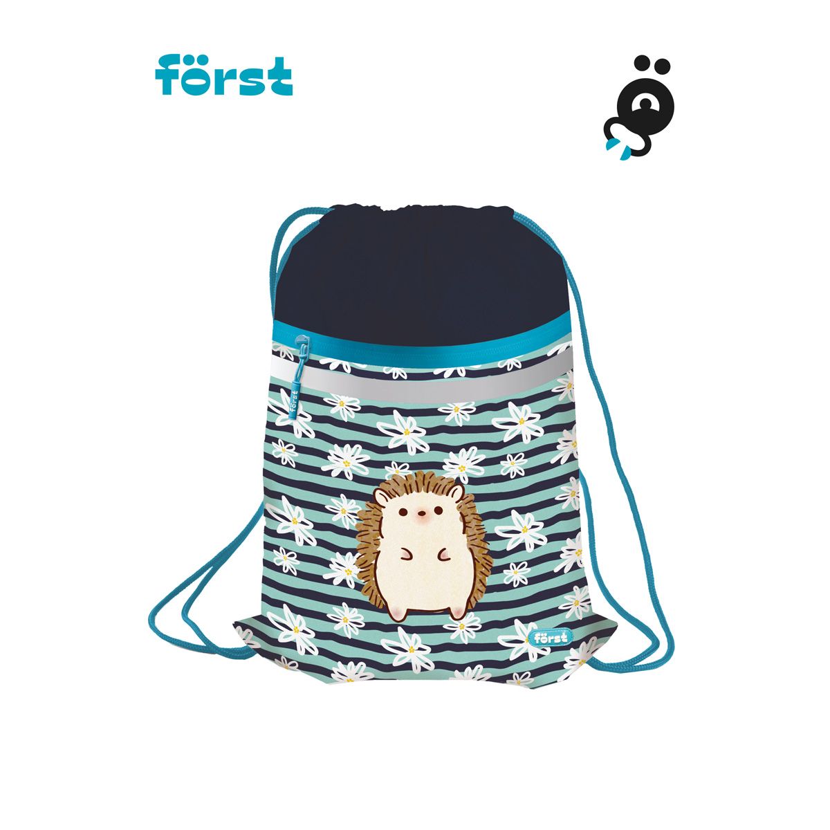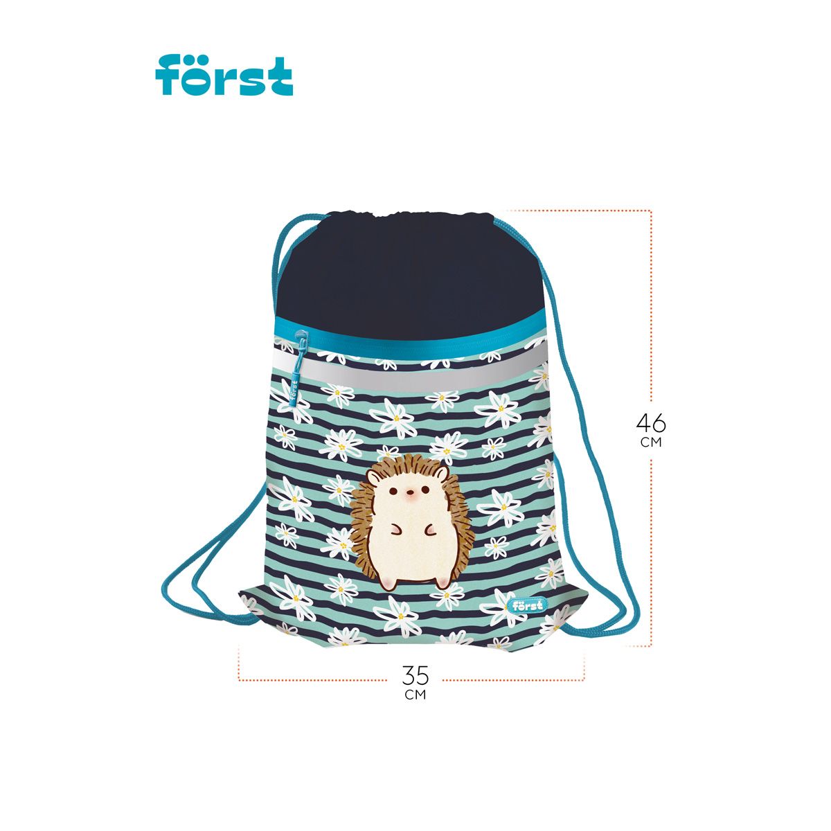 Мешок для обуви 1 отделение Först "Blue hedgehog", 350*460мм, вентиляционная сеточка, светоотражающая лента, карман на молнии