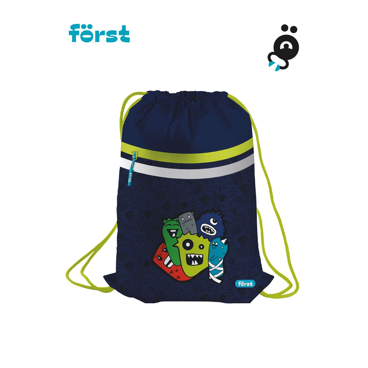 Мешок для обуви 1 отделение Först "Monsters", 350*460мм, вентиляционная сеточка, светоотражающая лента, карман на молнии