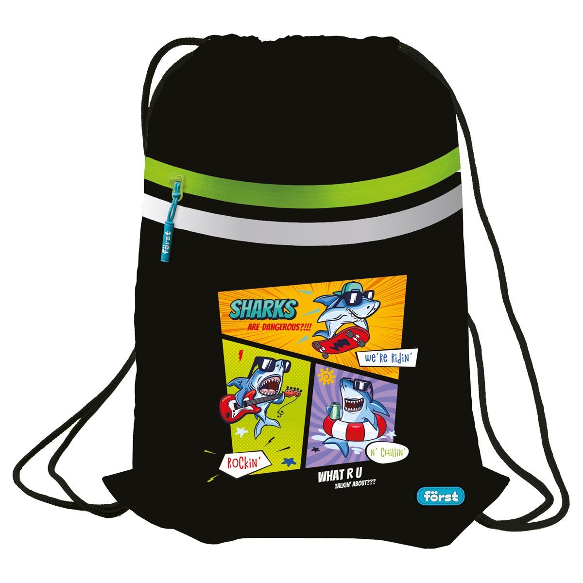 Мешок для обуви 1 отделение Först "Shark party", 350*460мм, вентиляционная сеточка, светоотражающая лента, карман на молнии