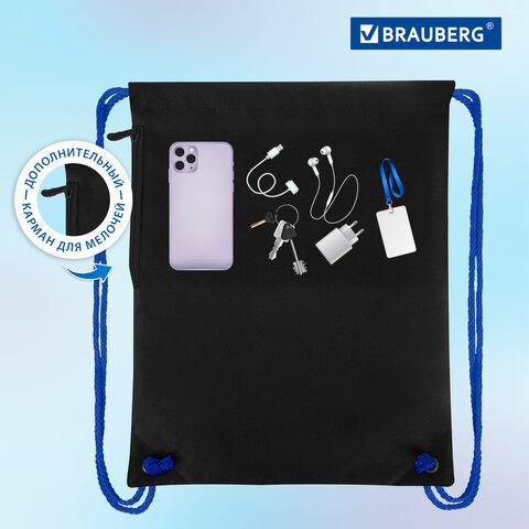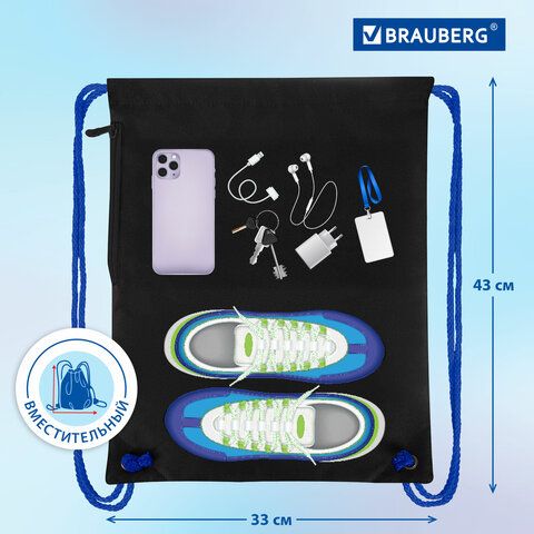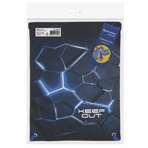 Мешок для обуви BRAUBERG PREMIUM, карман, подкладка, светоотражайка, 43х33 см, Digital lava, 272426