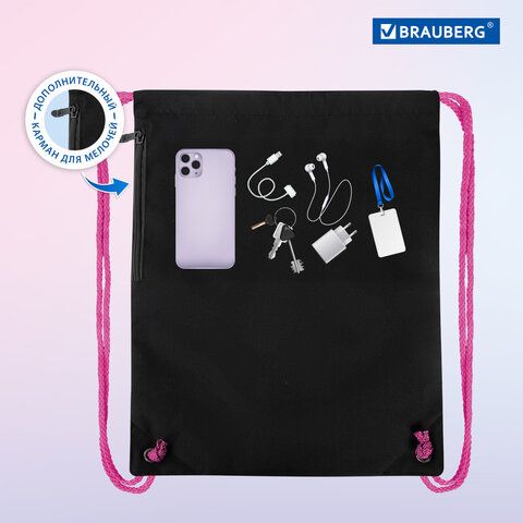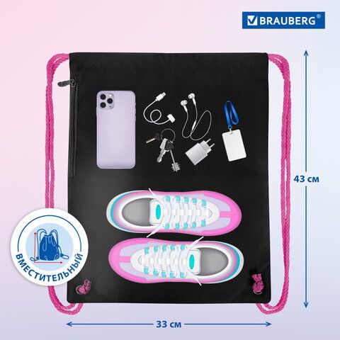 Мешок для обуви BRAUBERG PREMIUM, карман, подкладка, светоотражайка, 43х33 см, "Neon cat", 271621