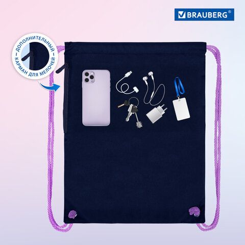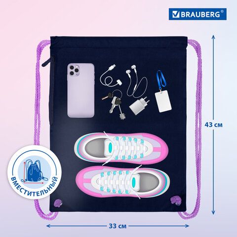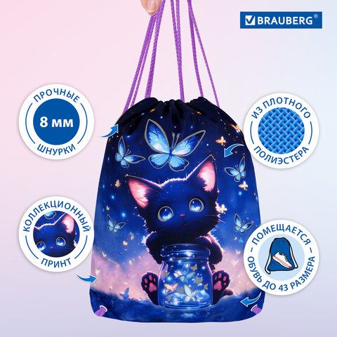Мешок для обуви BRAUBERG PREMIUM, карман, подкладка, светоотражайка, 43х33 см, Night catcher, 273442