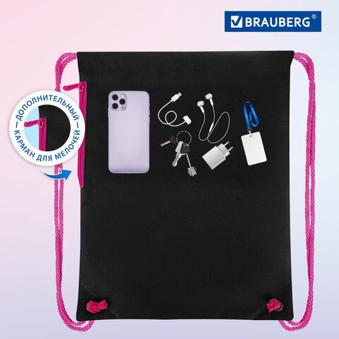 Мешок для обуви BRAUBERG PREMIUM, карман, подкладка, светоотражайка, 43х33 см, Space sweets, 272422
