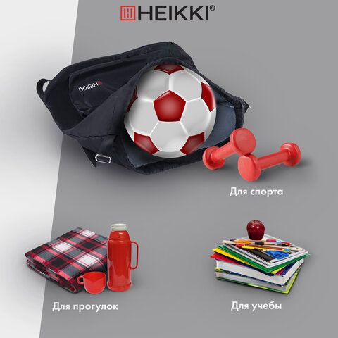 Рюкзак спортивный мешок HEIKKI CASUAL (ХЕЙКИ) с дополнительным карманом, 44х34 см, Total black, 273457