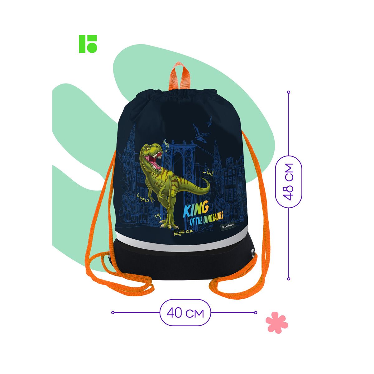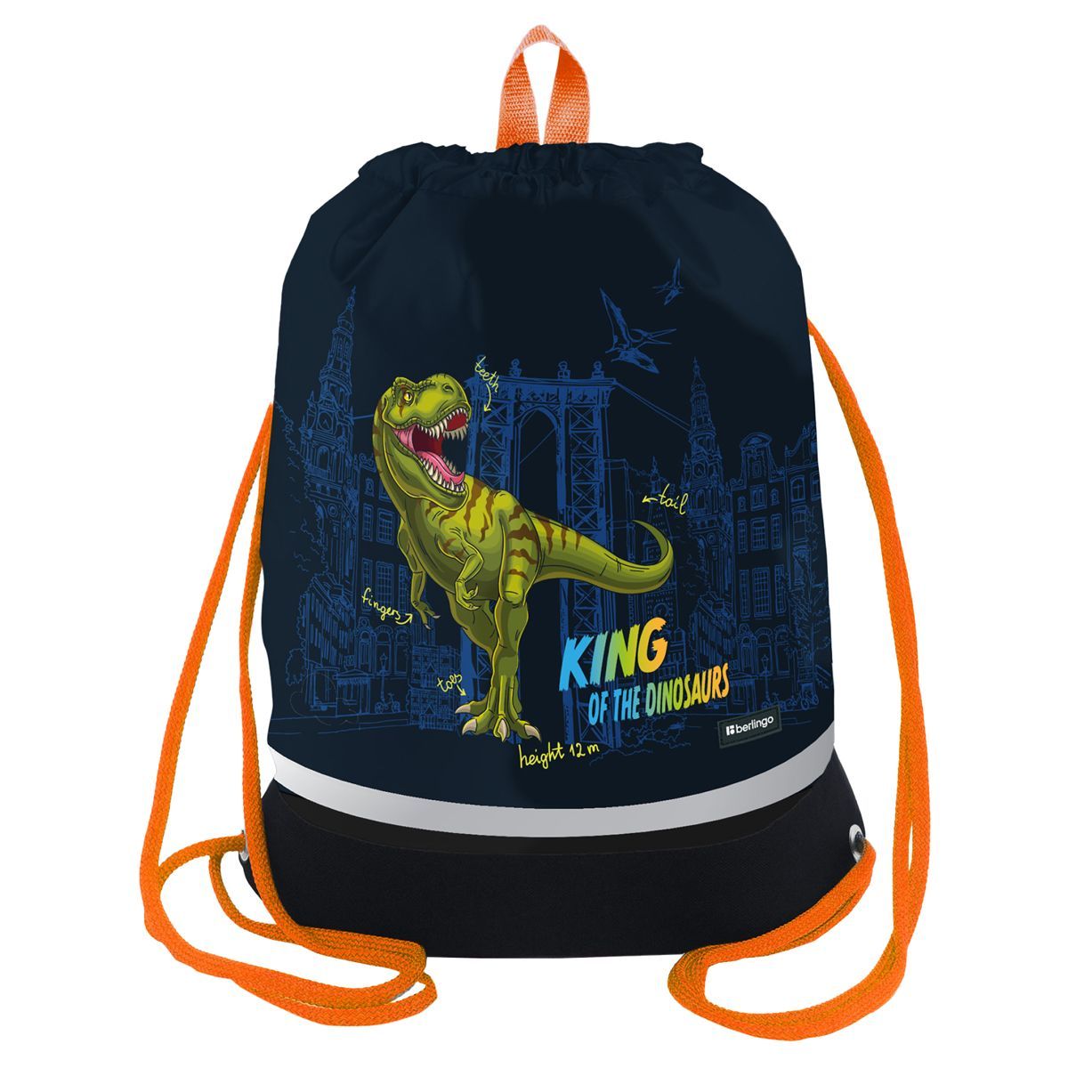 УЦЕНКА - Мешок для обуви 1 отделение Berlingo "T-Rex style", 400*480мм, расширяющееся дно, светоотражающая лента, карман на молнии (осн 351223)