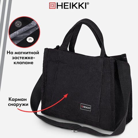Сумка-шоппер HEIKKI mini, вельвет, карманы, 25х20 см, черный, 272439
