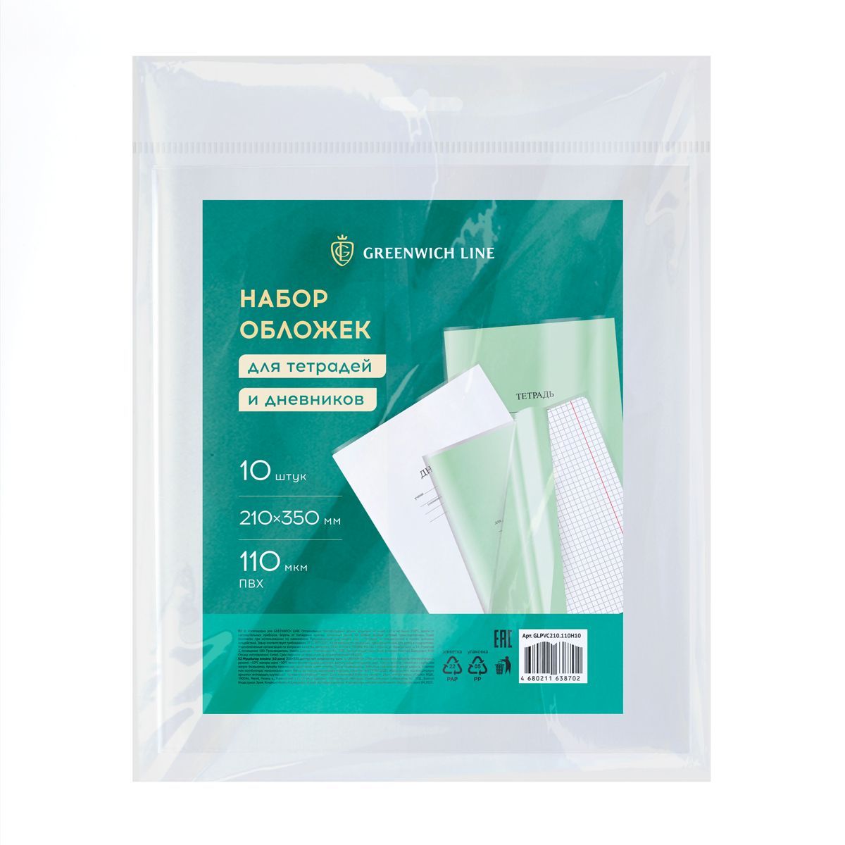 Набор обложек (10шт.) 210*350 для тетрадей и дневников, ПВХ 110мкм, Greenwich Line