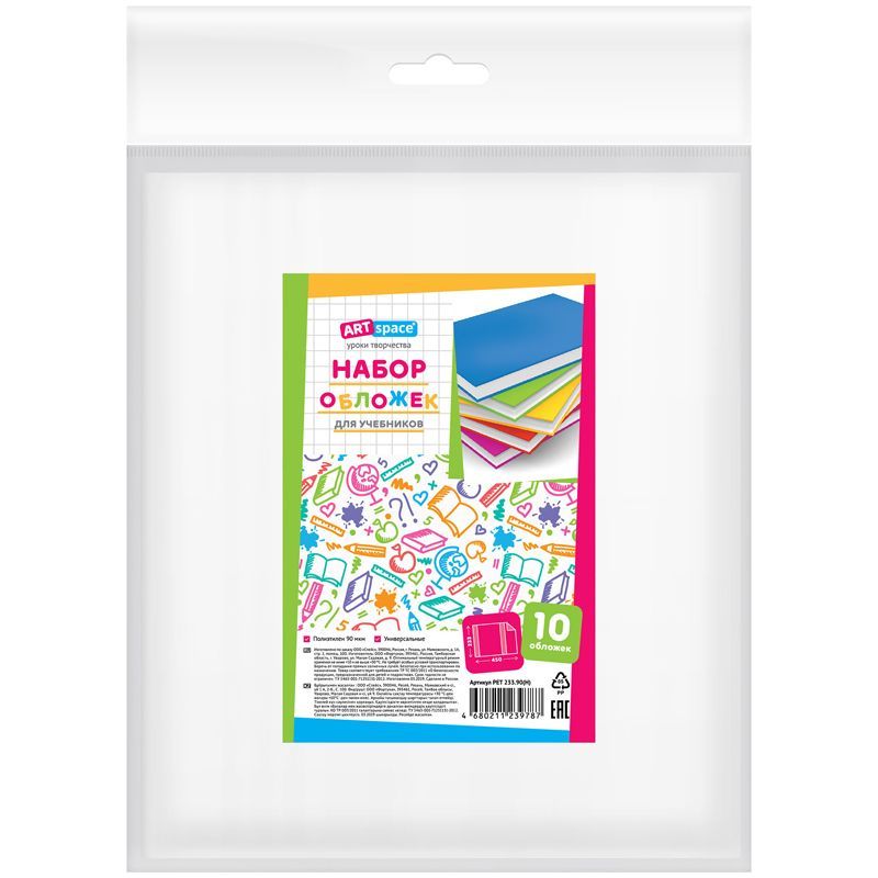 Набор обложек (10шт.) 233*450 для учебников, универсальная, ArtSpace, ПЭ 90мкм